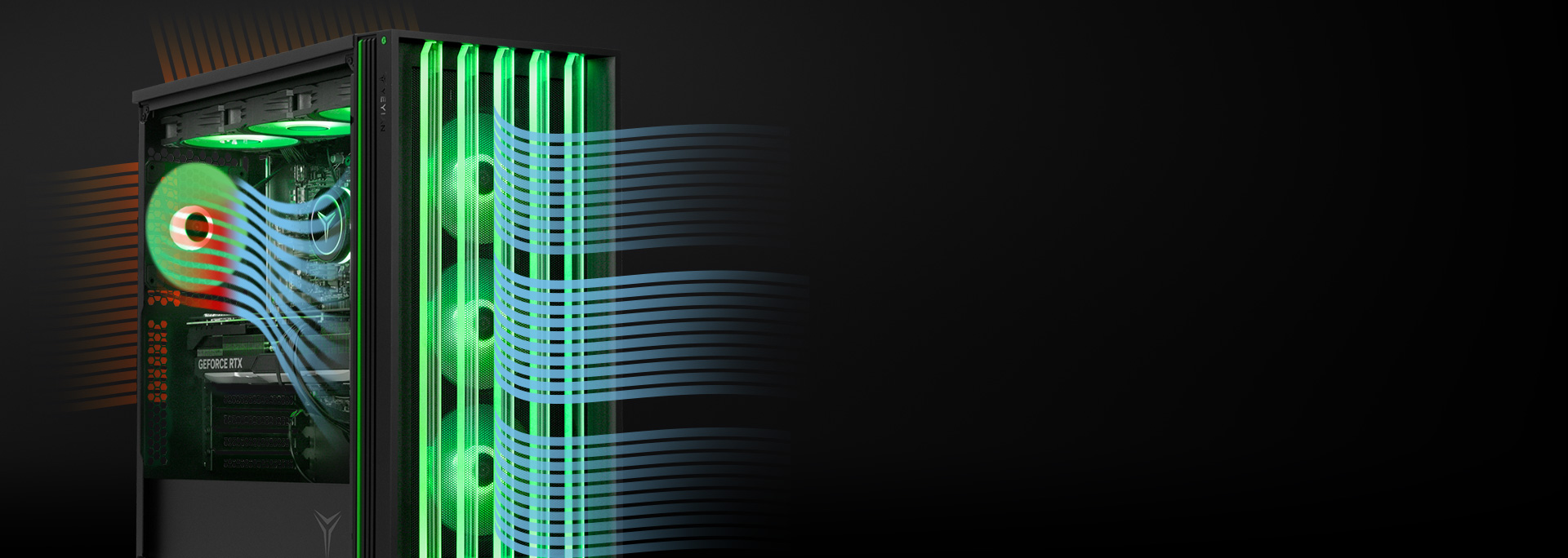 The advanced cooling system, with high-quality components and an optimized airflow design, ensures that this PC stays cool even under the most demanding conditions. With 7 premium fans, the AIO 360 cooling system keeps all internal components at ideal temperatures to prevent overheating and guarantee stability and longevity, even during long gaming sessions or intensive tasks.