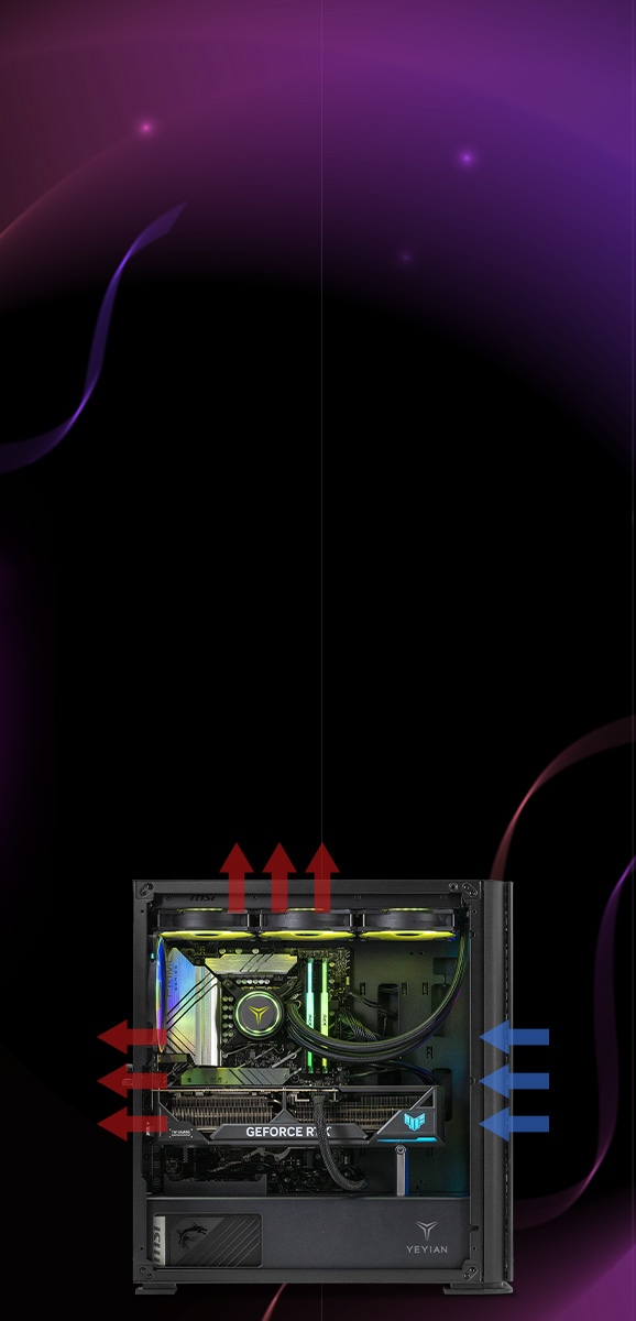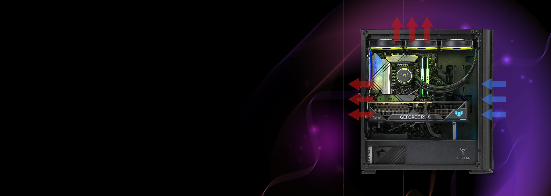 Equipped with an AIO 360mm liquid cooling system and seven RGB fans, the Yari 49KFC-47T1N Gaming PC ensures your battles never overheat, even during the most intense adventures. This advanced cooling technology guarantees your gaming rig stays at the perfect temperature allowing you to conquer virtual galaxies without breaking a sweat. The Yari 49KFC-47T1N is your trusty spacecraft, ready to keep your gameplay as cool as the depths of space.