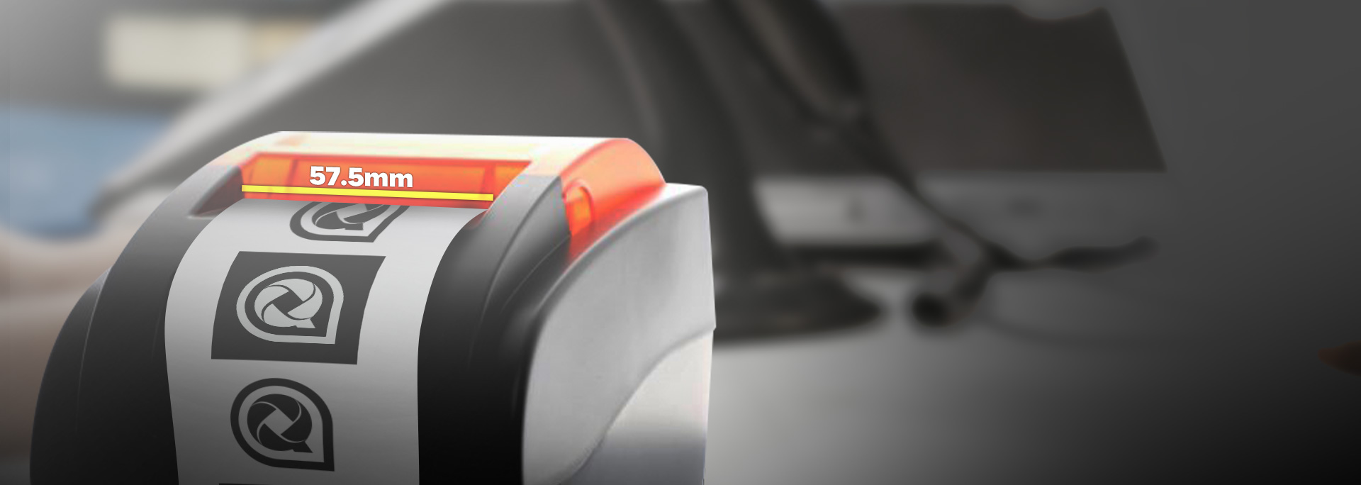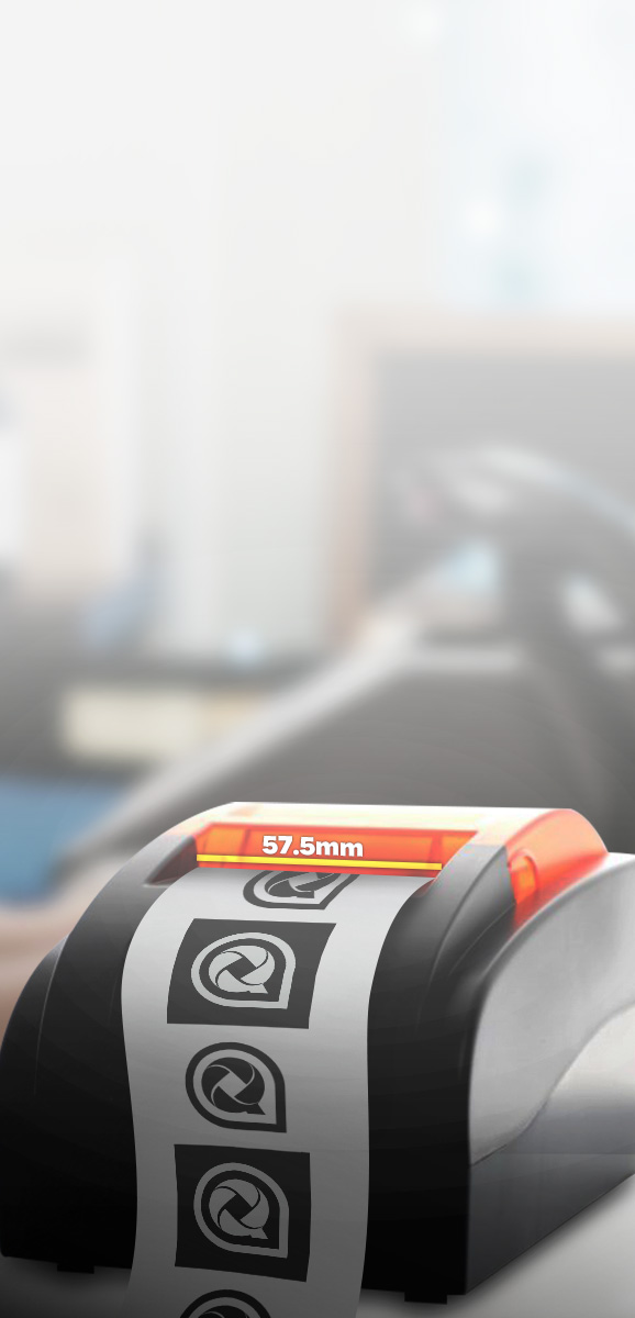 Ancho de impresión de 57.5 mm ± 0.5, compatible con múltiples aplicaciones comerciales.